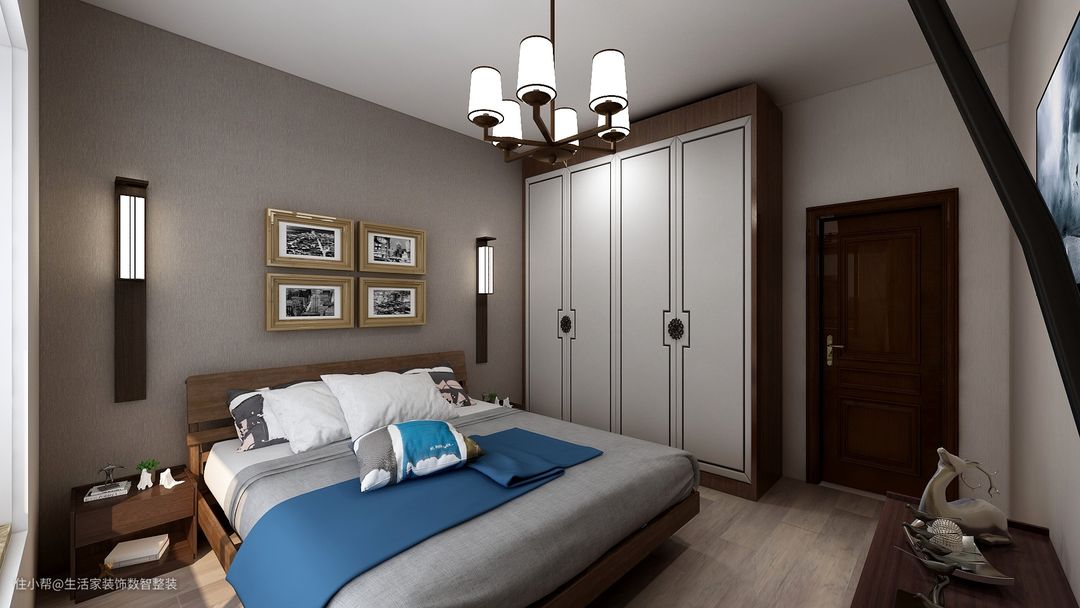 主卧室简单的有色乳胶漆配上我们的长条壁灯,犹如我们的床头背景墙。