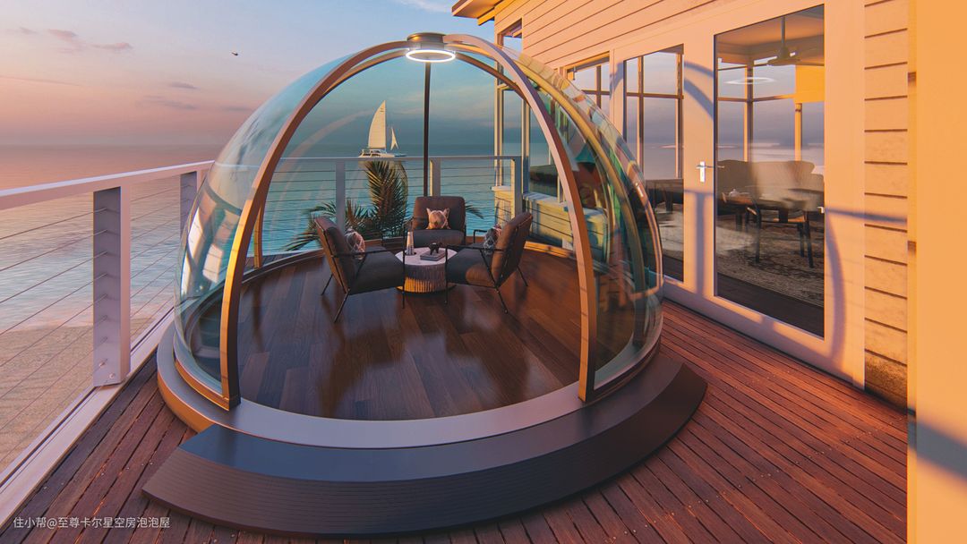还可以根据自己喜欢的风格来装饰星空房,启动电动遥控器,拉开穹顶的窗帘,露出透明顶部,白天享受阳光,晚上观星赏月!