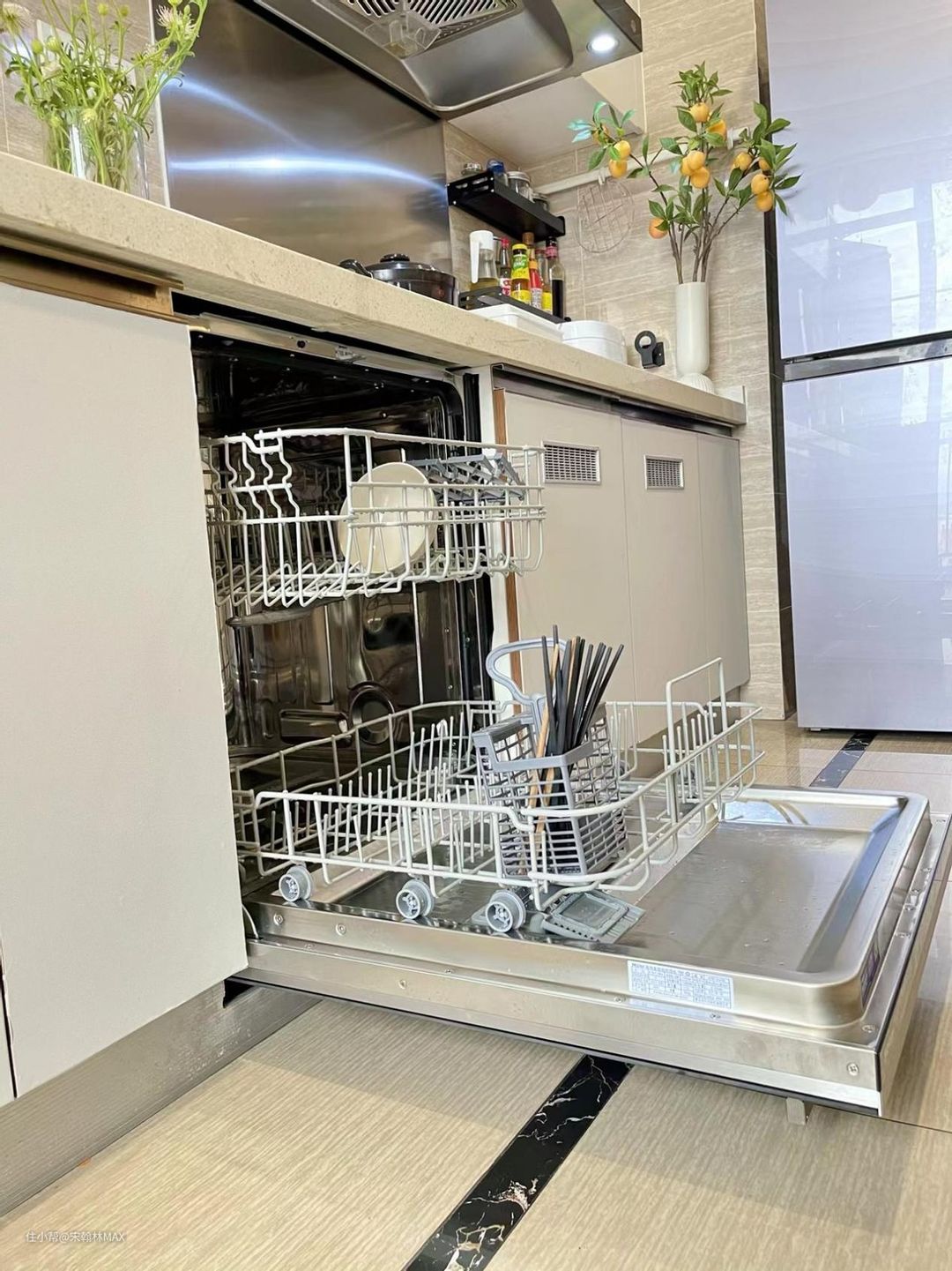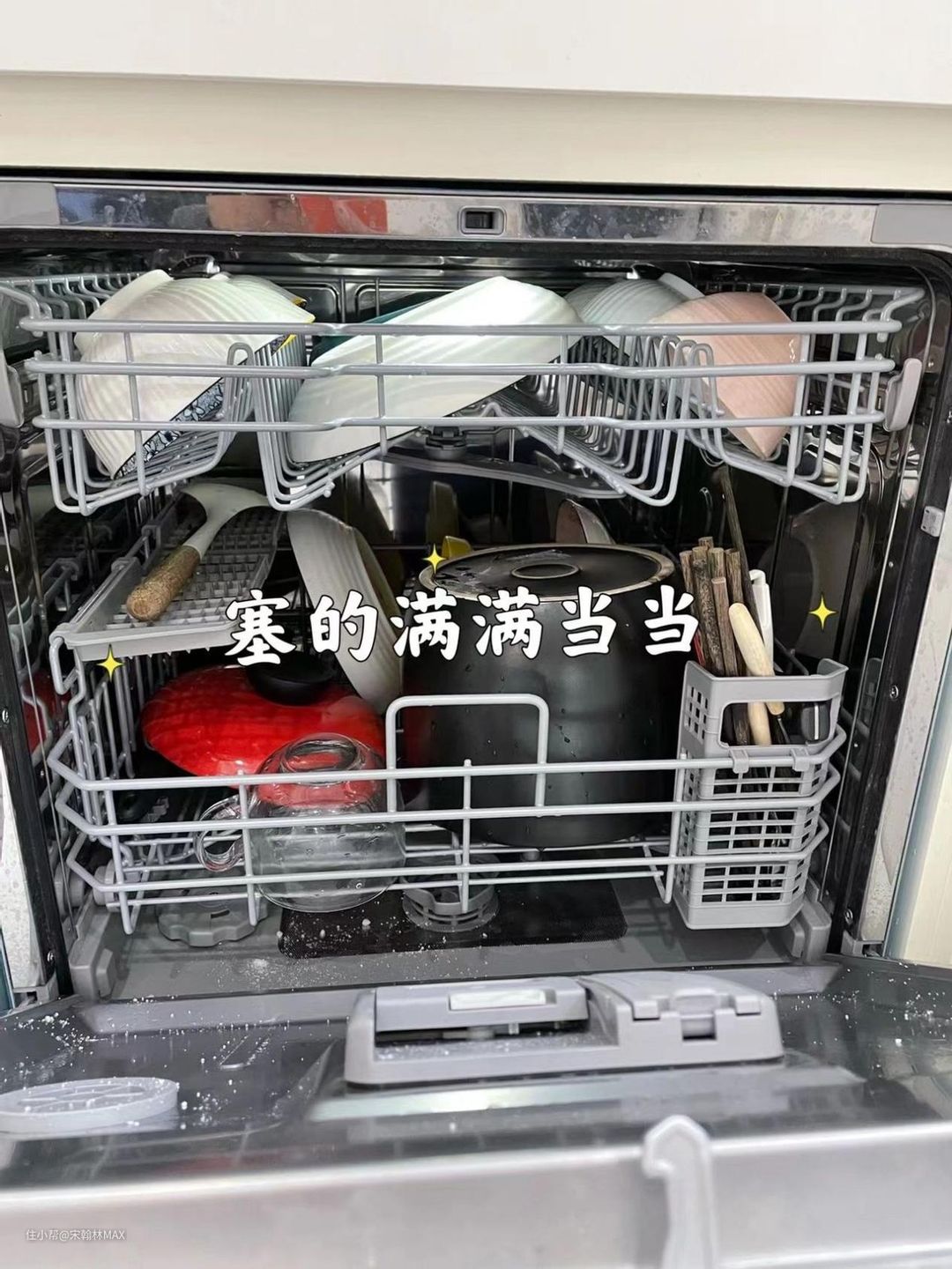 最开心的是,早上拉开洗碗机的门里面,看着餐具这么感觉,心情就会特别舒服。