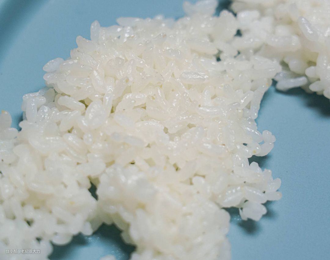 最后再看看老纪自己习惯的1.6倍米水比用七彩叮当做的大米饭,盛在碗里每一粒都很均匀,不像上图一坨坨的。吃在嘴里感觉也软硬适中,舌头能清楚的感受到一粒粒大米饭,比另外两款电压力锅的表现都好了很多。