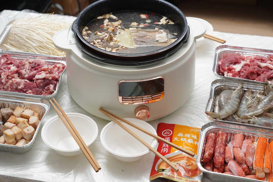 得益于七彩叮当1300w的加热功率以及火锅模式的6档火力可调,我邀请朋友来家里一试。锅底是海底捞的,准备了牛羊肉、丸子以及虾、青菜等食材。