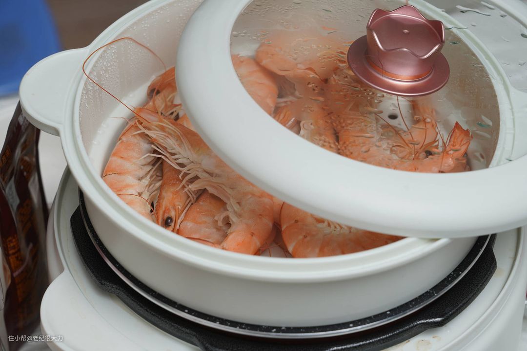 虾也蒸好了,干净、整洁,以后吃火锅就可以蒸海鲜来替代煮海鲜了。