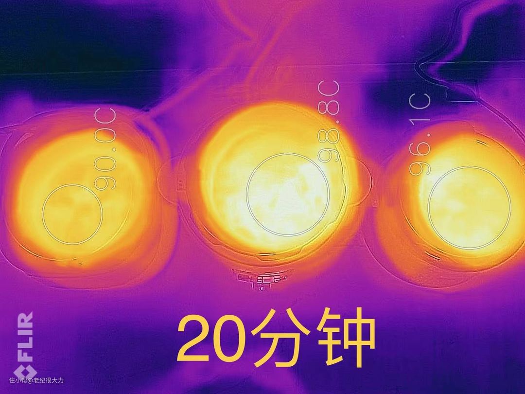 20分钟时左侧的水温变高了,但是老纪等到23分钟时还没有沸腾,我就没有再等了。究其原因应该是左侧的温控设计不同,提前关闭加热导致的水烧不开。