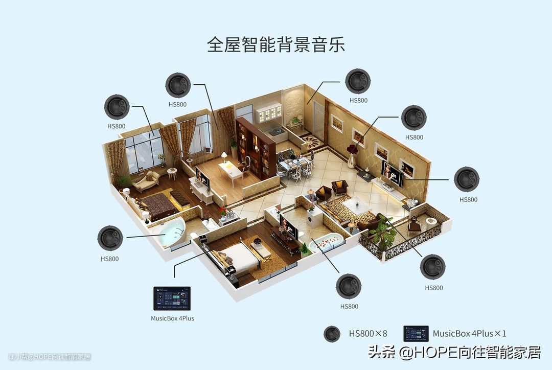 布线要点:家庭背景音乐系统也是一个独立的布线系统,可以将来自各个房间的扬声器的音箱线信中接到位于客厅影音中心的墙壁上的音箱接线面板,可分区控制功放器再依次接音箱接线面板即可形成家庭背景音乐系统。