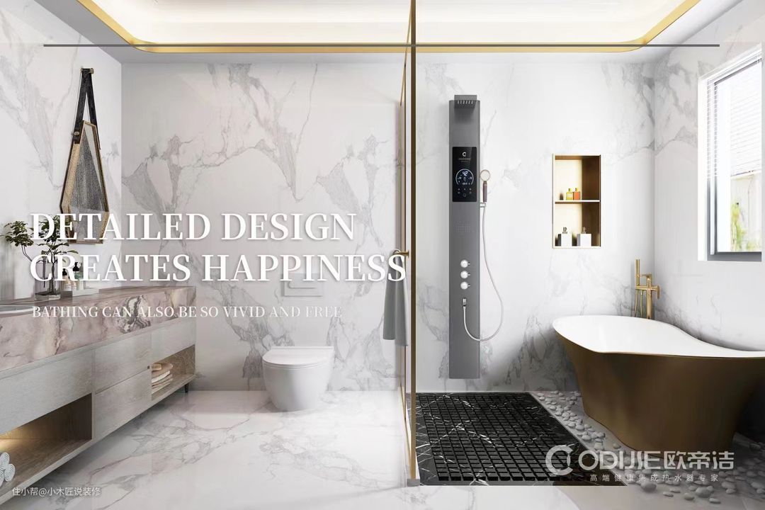 集成热水器是集成了多样功能,不仅有热水器的功能还有恒温花洒的功能,供全无热水,突破传统外观设计,整体显竖立式,不占空间,给人一种时尚、高雅、眼前一亮的视觉冲击,无需储水,即开即热,轻松解决排除藏污纳垢,杜绝细菌水,随时享受健康沐浴生活。话不多说上图,希望能给设计师朋友们解决在卫生间设计摆放的问题。