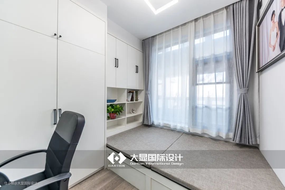 把本来露台窗户打掉,把阳台空间纳入房屋,使得本来的两室一厅变为三室一厅,增加使用面积,因为暂时还没有孩子,故而设计为书房,等后面有孩子再对书房进行改造。