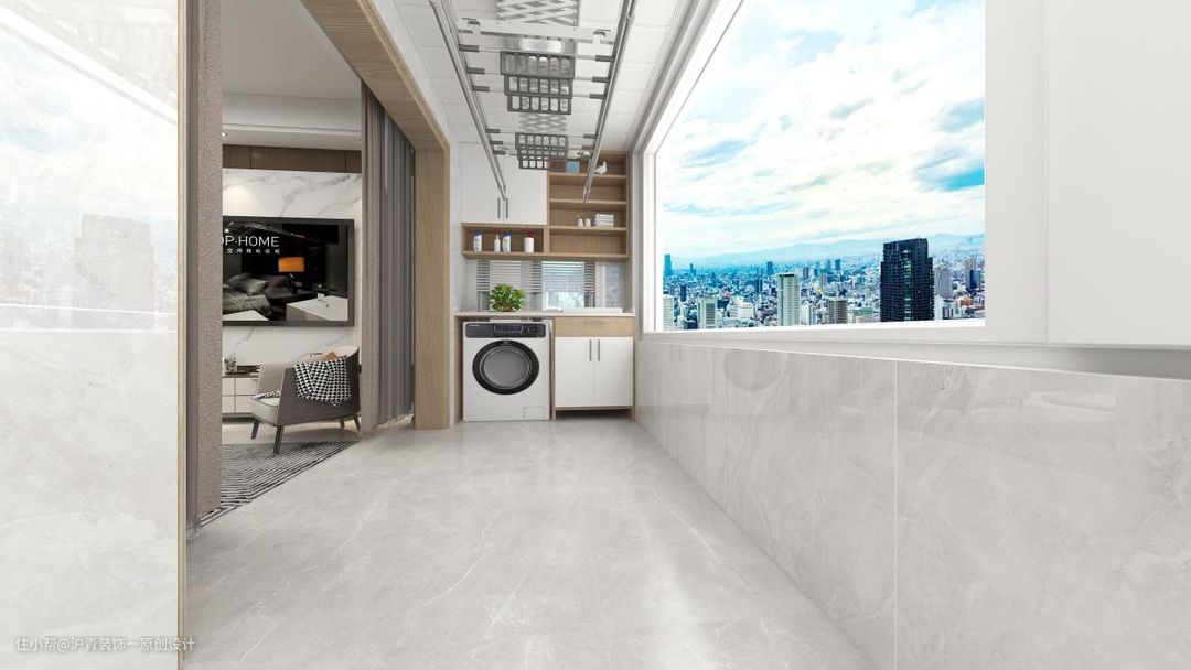 生活阳台:生活阳台一边设计收纳柜,一边设计洗衣伴侣,业主在休闲时光可以在阳台享受精致的下午茶。