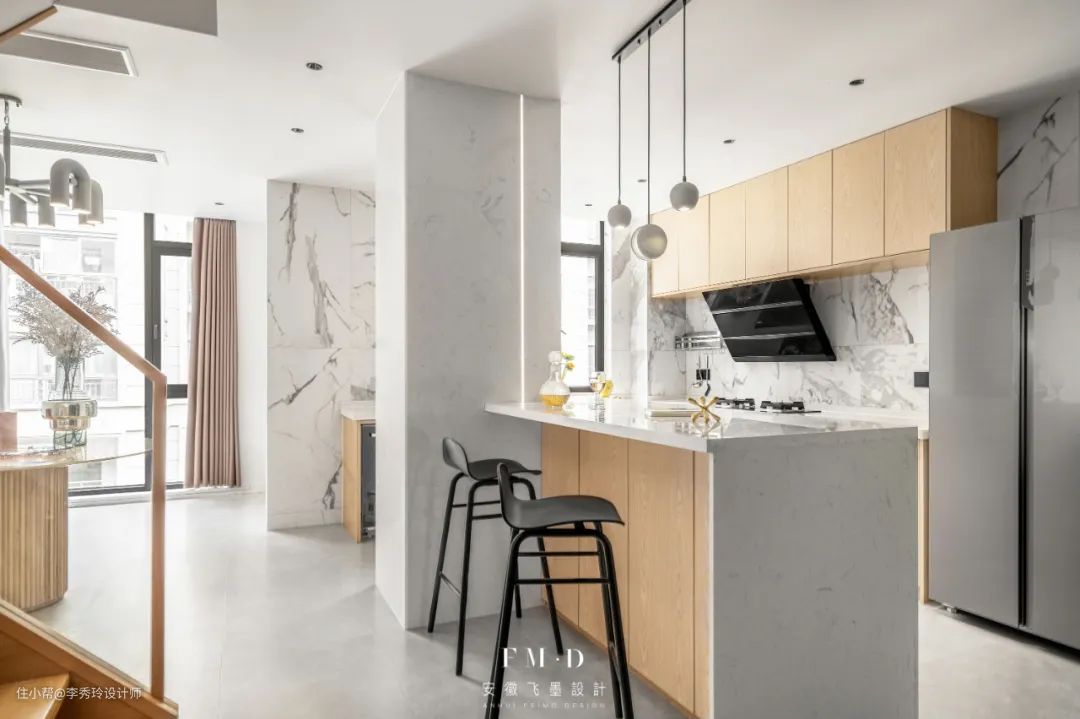 在我们选择开放式厨房或餐厨一体式,选择石膏板吊顶,顶面设计不会显得突兀,整体性会更强。