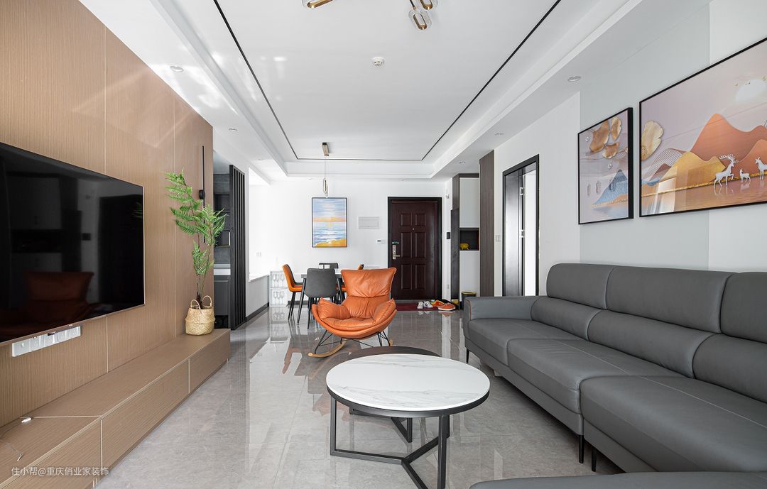 例如:如果客厅是现代、北欧、极简、简约等类型的风格,我们就可以选择样式简约的吊顶——满吊或者边吊是当下家装设计中最常见的形式。