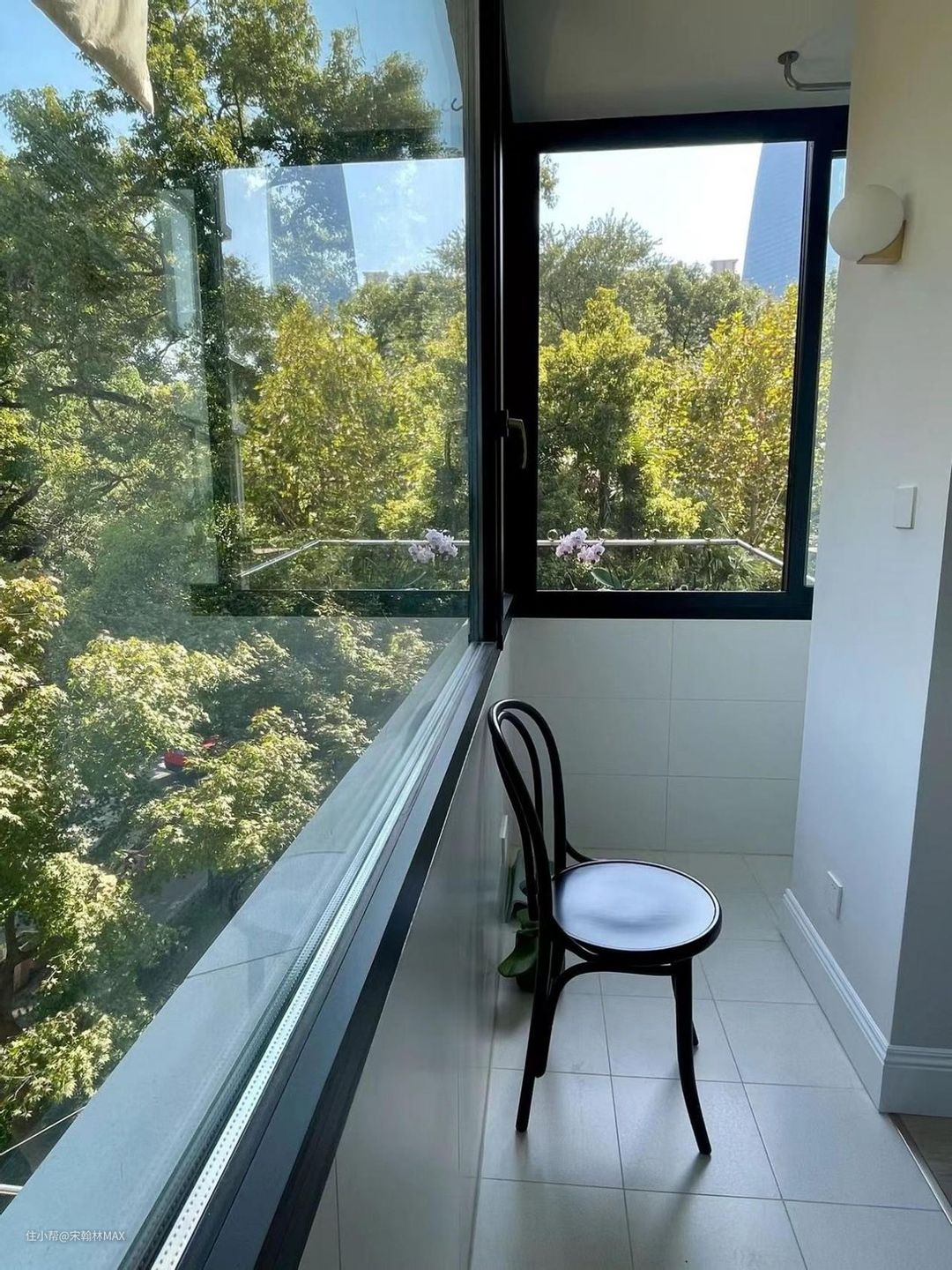 阳台窗户由原来的推拉窗改成了大面积的系统窗,这扇大窗户作为客厅和阳台的点睛之笔,采光和风景简直满分。