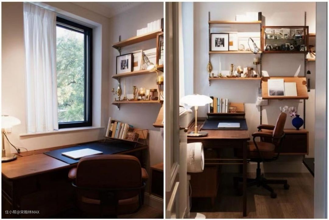 动手DIY的墙面置物系统,用来收纳一些琐碎的小玩意,即起到了收纳作用,又提升了书房整体的美观度。