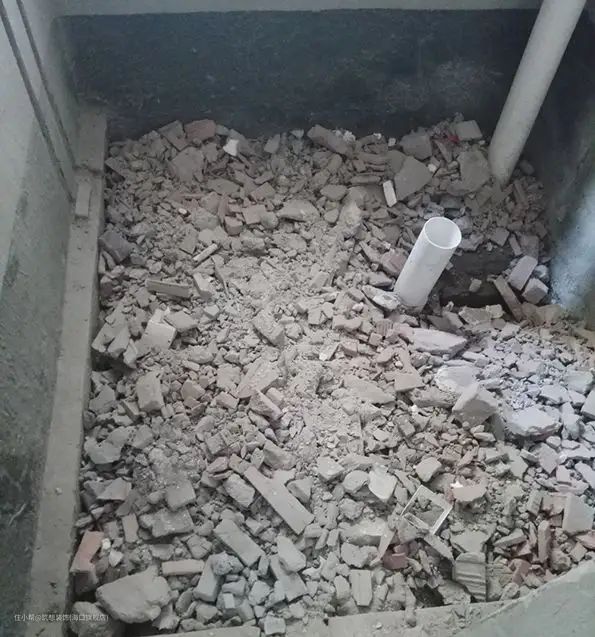 建筑垃圾回填唯一的优点就是眼前看起来的成本最低,解决了施工现场的建筑垃圾(包括拆墙,开线槽的废弃物)木材、泡沫、塑料、饭盒等的清运,直接回填到卫生间的沉箱,由于这些材料很多质地坚硬,会破坏沉箱的防水层,极易损坏已经安装好的给排水管,产生渗漏,增加维修成本。