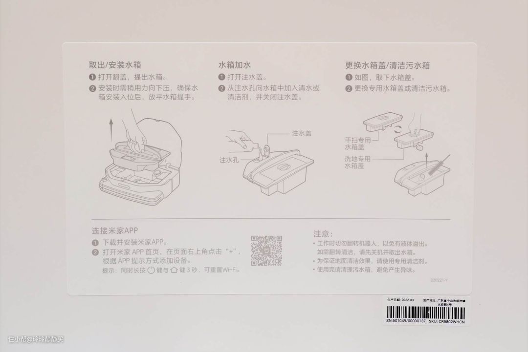 附加功能先不研究。智米A1开拓者最大卖点是以扫地机器人的形态,实现了手持洗地机的活水洗地功能。虽然配备了额外的水箱盖模组来实现干扫功能,但个人觉得日常生活中洗地模式明显使用频率更高,也更实用。所以清洁效果方面,我必须得按洗地机的标注去测试它的清洁能力。