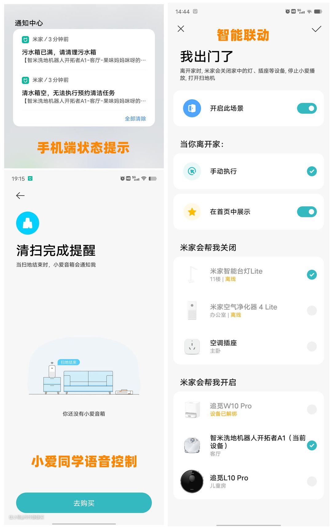 所以,APP端控制变得尤为重要。智米洗地机器人开拓者A1可接入米家APP,基础的智能远程操控使用有保障,连入智能家居系统也很方便。
