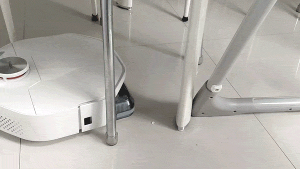 三是边角清洁比想象中要好。首先D型机身,对于转角的覆盖率比圆形的要高,虽然碰撞避障占主导,但偶然发现,沿边清洁时,即便遇到这种圆形的场景,也能相对紧贴的清洁,这点好评。