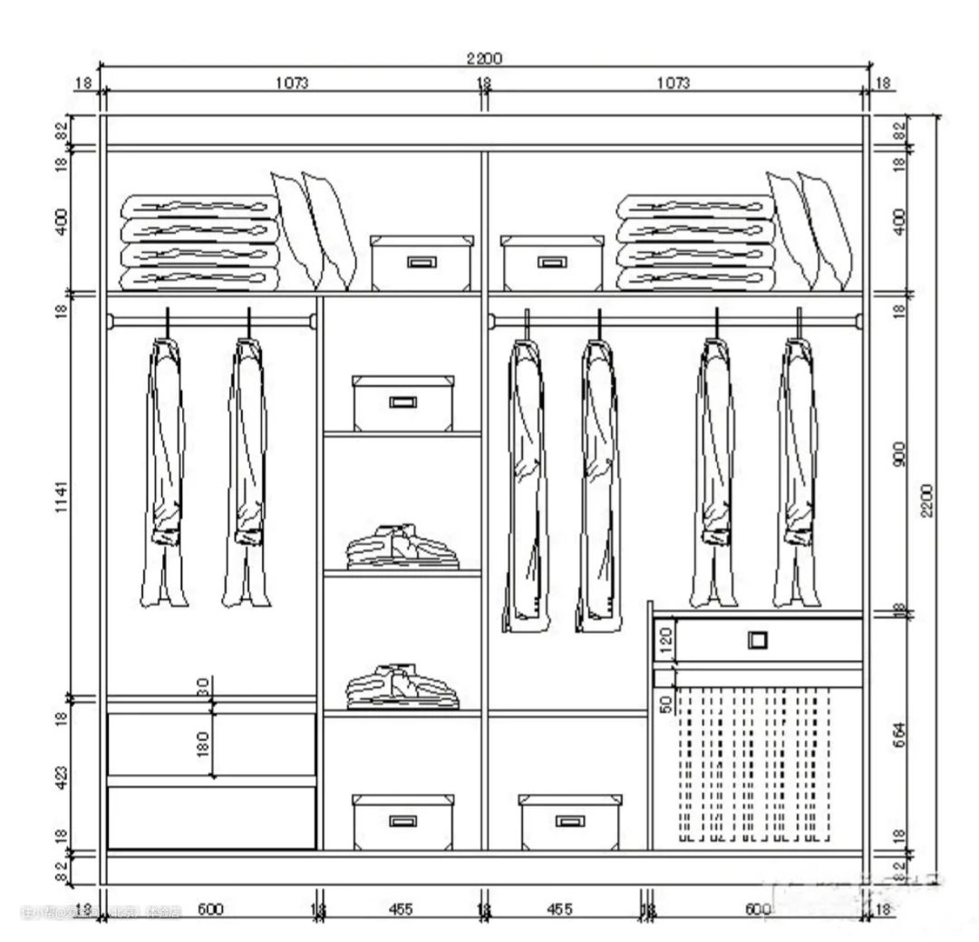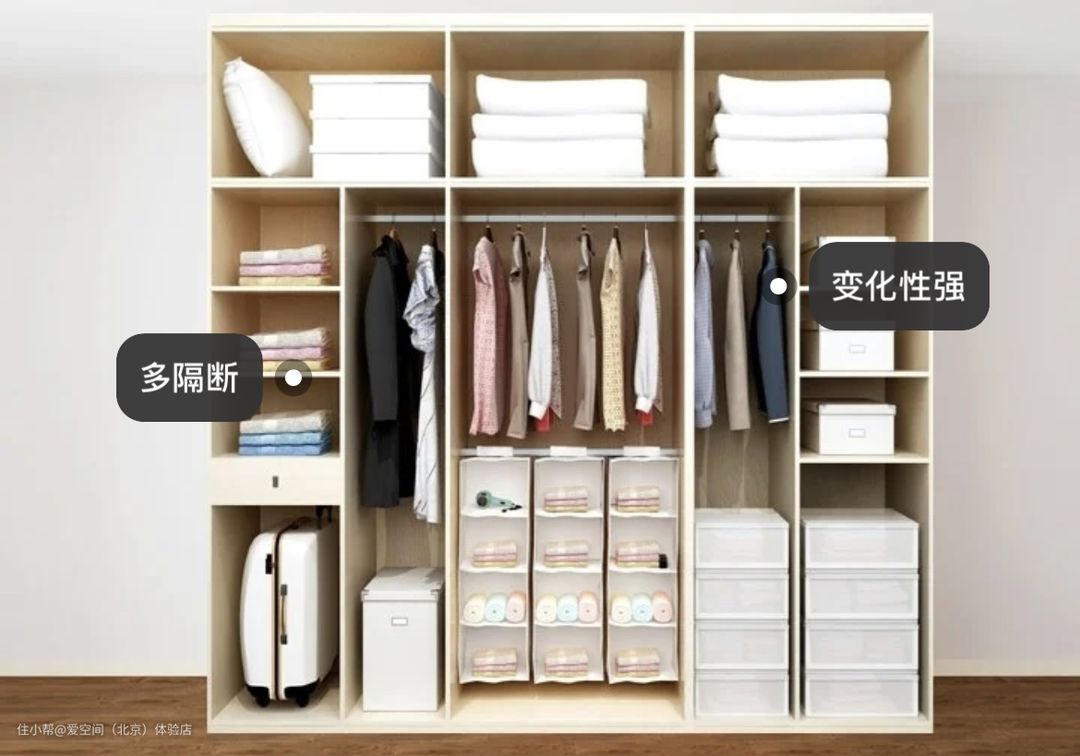 一般挂衣区可以分为长衣区、短衣区和裤装区收纳。