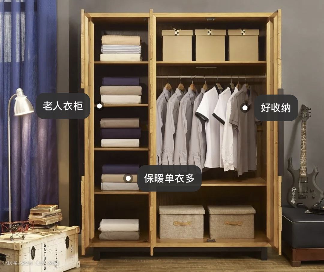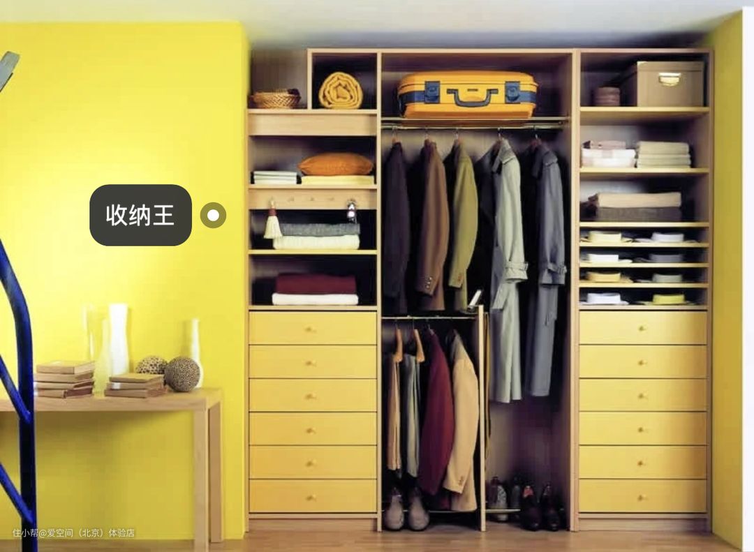 另外衣柜也兼顾收纳被子、枕头、包包、行李箱等功能。