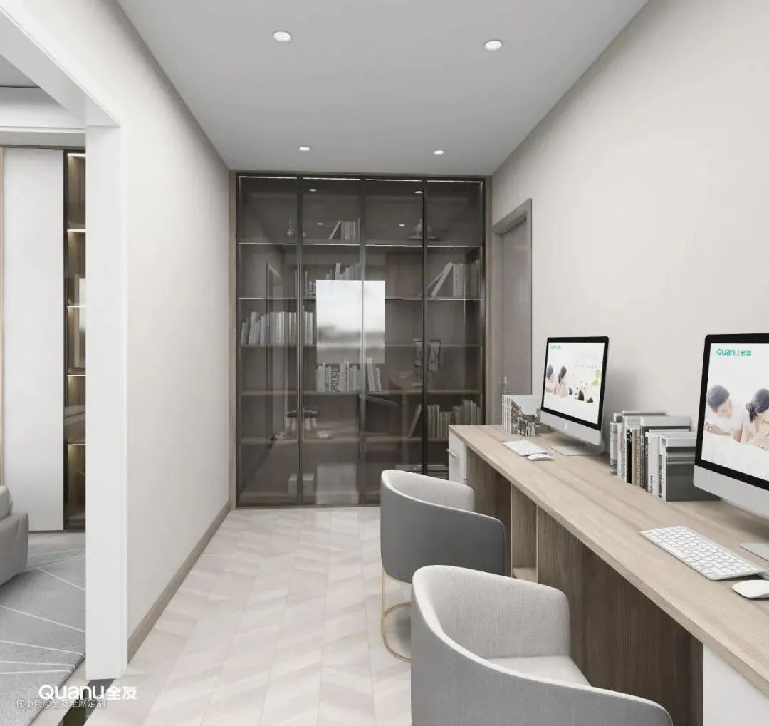 在空间条件允许的情况下,在这里定制一个小书桌,将走廊直接变成一个“小书房”也是不错的选择,不过这样的设计不适用于所有户型。