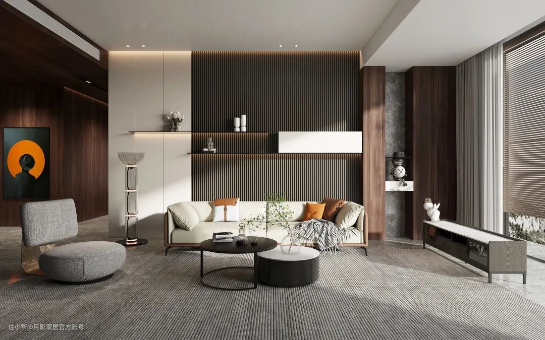 2、尽量选择小巧精致的家具,如极简岩板茶几、电视地柜、边角柜等,颜值档次高,耐用不过时;