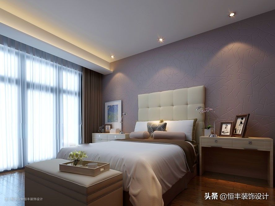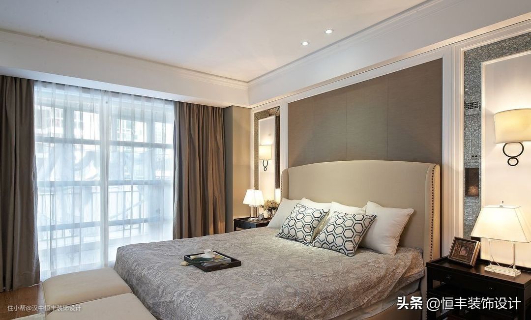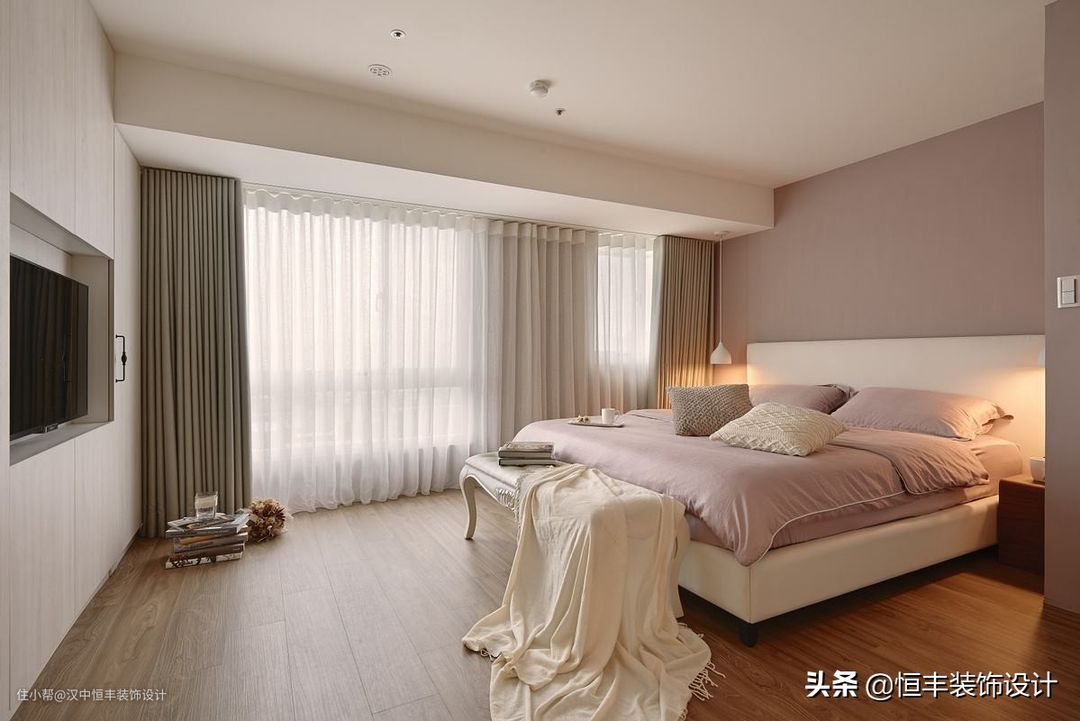 选择卧室的窗帘最好是多加一层白色的纱窗,材质不要选择天丝绒的,容易勾丝。建议选择素锦纱,透光不透人而且有质感