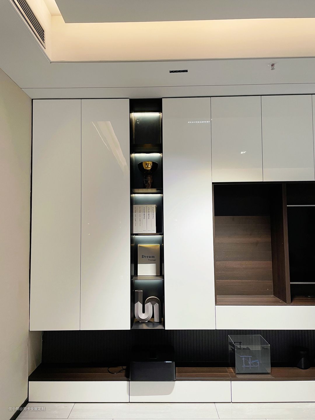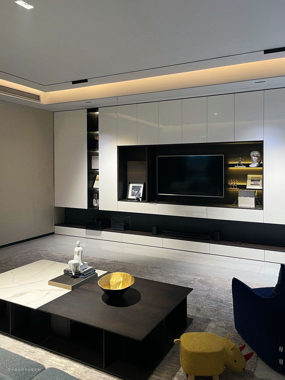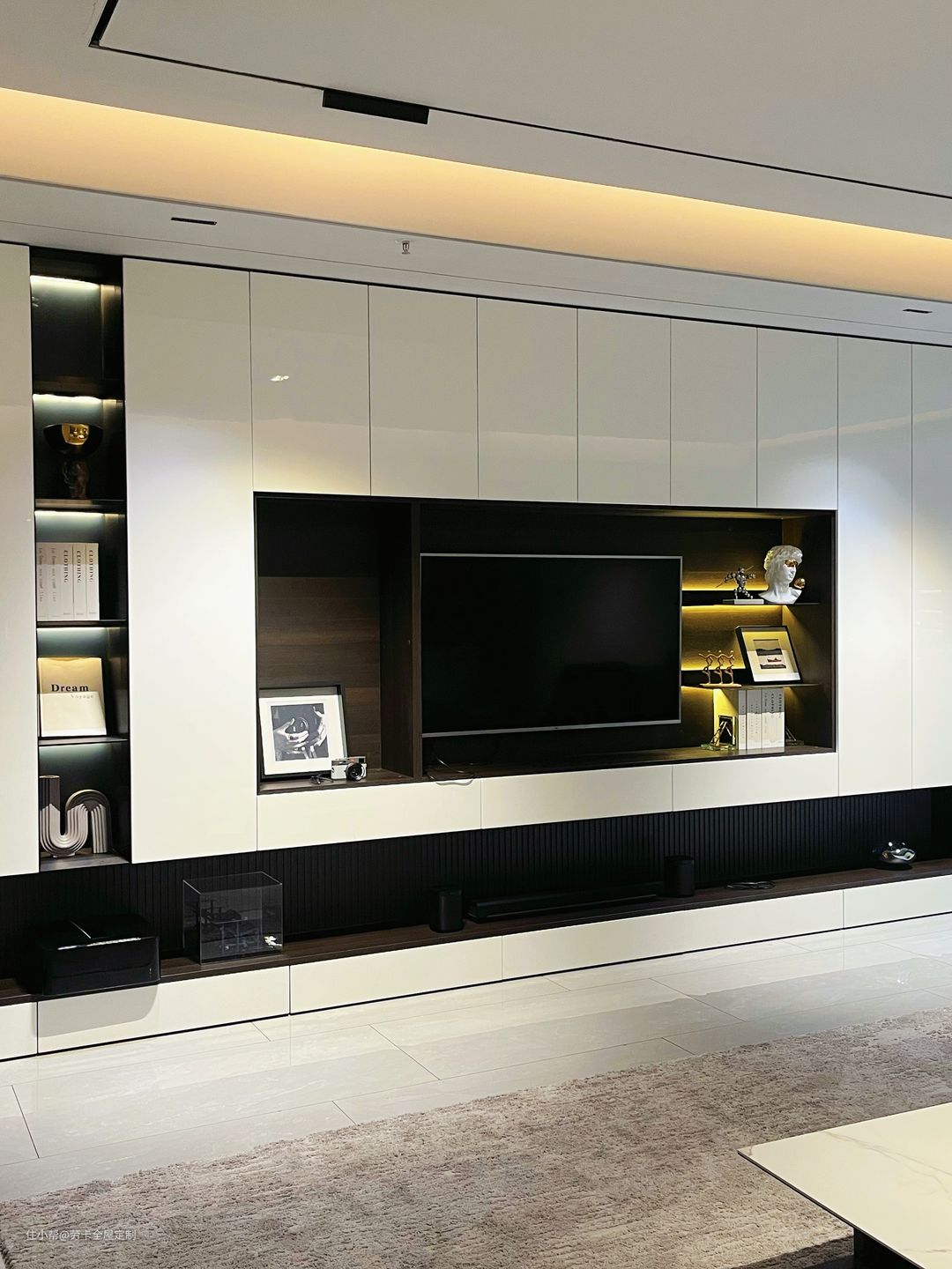 装电视柜的时候不少人都会上网找设计图,发现网上好多都是肤感材质的门板,但亮光材质的电视柜会更有轻奢感!