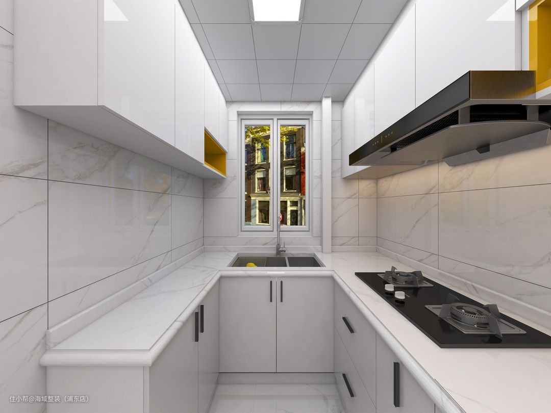 色彩选用的是白色,整体光线明亮。柜体留空的地方色彩采用的是橙黄色,整体的色调是冷色为主暖色进行调和。房间的每一处都有一处最为凸显的地方与色彩。