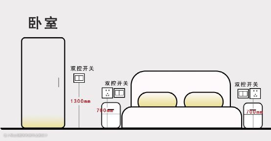 4.卧室床头的开关最好选用双控开关,这样睡前就不用下床关灯了,尤其针对老人居住的卧室很实用。