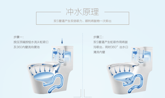 它是现在马桶里冲水,水量足够多时,就会产生虹吸力。虹吸力,可以把马桶里的水和杂物都“吸”进管道里。