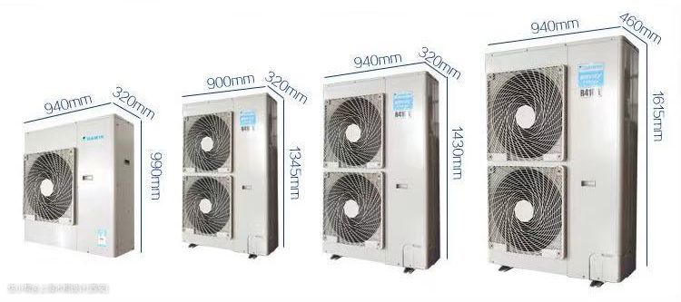 室外机主要注意尺寸问题,需要结合房型提供合理的配置建议。常见外机厚度在350-450mm之间,大部分在400mm;宽度一拖六以下在900-960mm之间,一拖七及以上约1100mm;高度一拖二至一拖五约为800-1000mm,一拖四及一拖六以上约为1380-1650mm。