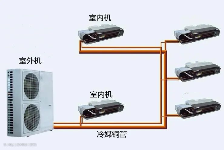 运作原理:以水作为介质,室外机完成制冷循环的整体过程,是一套完整的系统,而室内机则只是简单的热交换作用,两者相互独立。