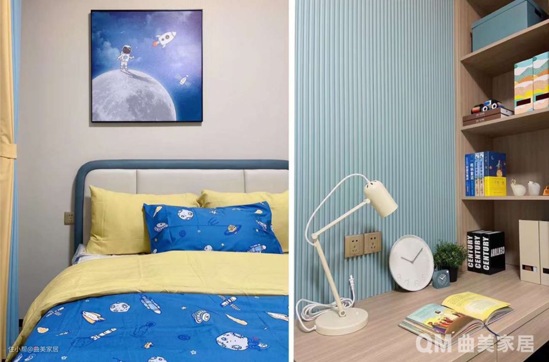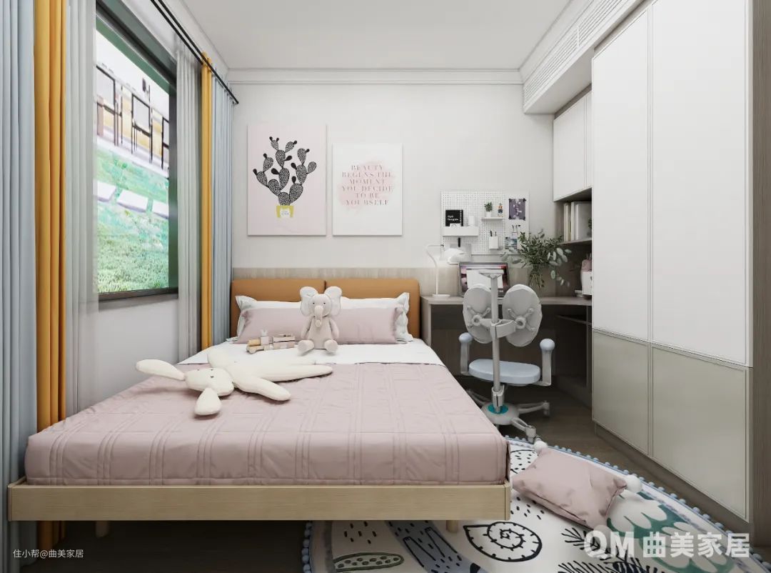 儿童房颜色纷呈、活泼动态,扩充了学习区域,其他装饰或家具产品较少,方便以后再次调整。