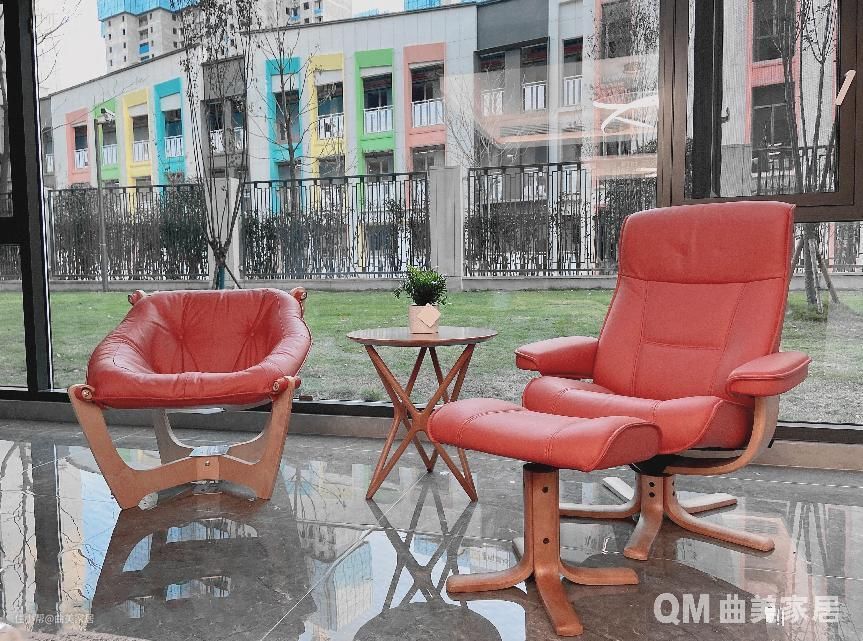 橘色挪威宠及挪威躺是阳台最鲜艳、最醒目的产品,与落地窗外绿色的草坪、多彩的楼体外墙形成了明显的颜色差异。闲暇时,男女主人在阳台浅聊低语、品茶看报,孩子在客厅跑来跑去,生活的美好大抵就是这样。