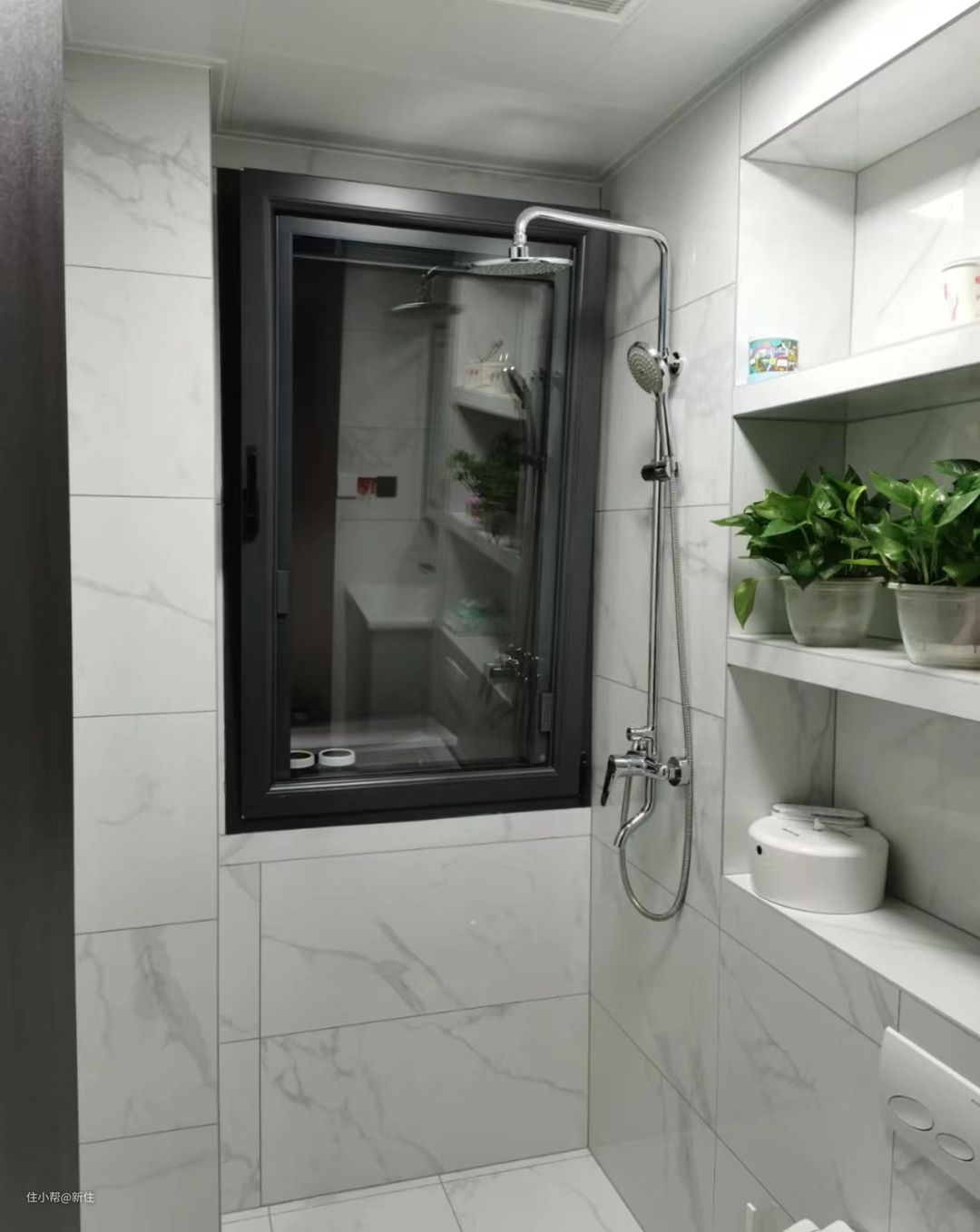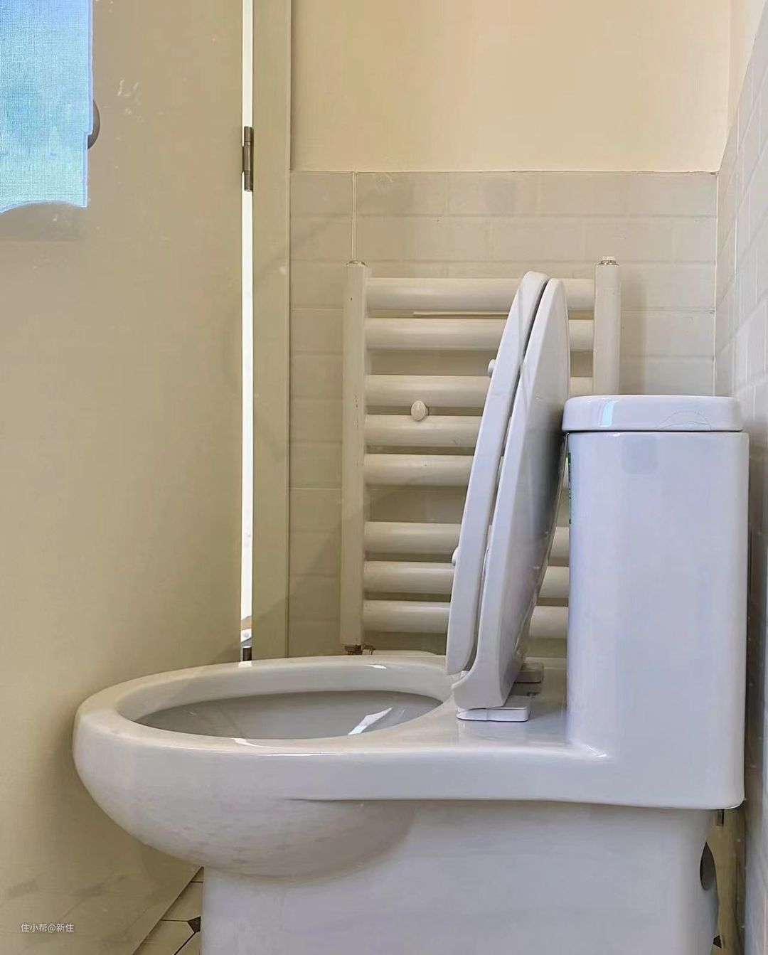 有像上图,窗户开了,碰到花洒的;也有如下图,门开了碰马桶的。