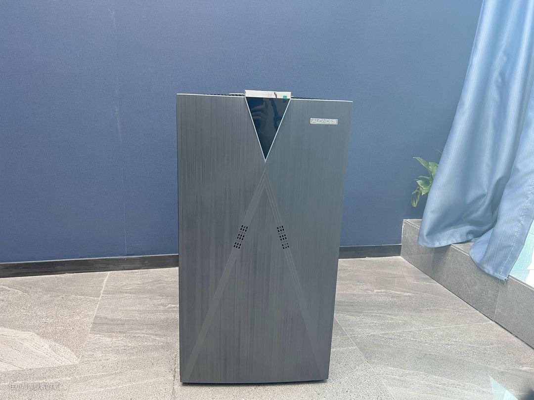 机身两侧都可以打开,并且两侧都是放滤芯的地方,在两侧的面板上有很多的小孔,可以达到很好的通风效果,和市面上大多数空气净化器的进风方式一样,欧朗德斯M9空气净化器也是采用了两侧进风,顶端出风的运行方式,这种方式也是很合理的。