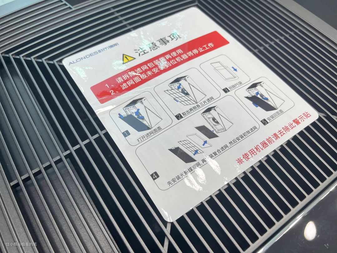 在第一次使用时需要把滤芯上面的保护膜撕去,欧朗德斯M9空气净化器和其它空气净化器的不同之处在于它有三层滤芯共六重过滤原理。滤网分别是初效滤网,复合滤网和光触媒滤网,这样污浊的空气通过这层滤网之后就会变得很清新。