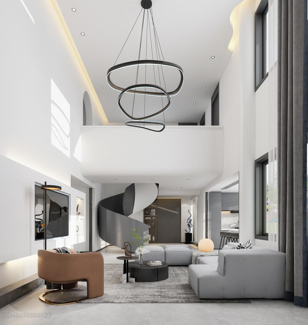 超高的挑空工艺使得客厅的上下维度特别大,看起来也比较宏伟。
