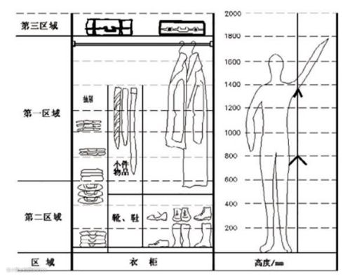 (衣柜人体工学图解,可以看到,1.8米以下都适合取放操作)