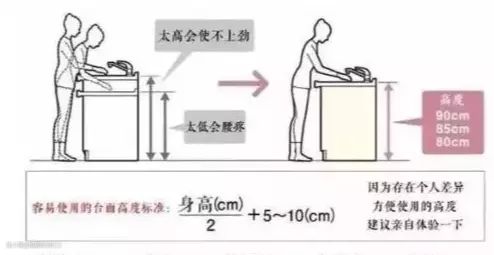 洗碗槽台面,一般在0.8-0.9米为宜,洗碗洗锅时弯腰幅度不大,腰不累。