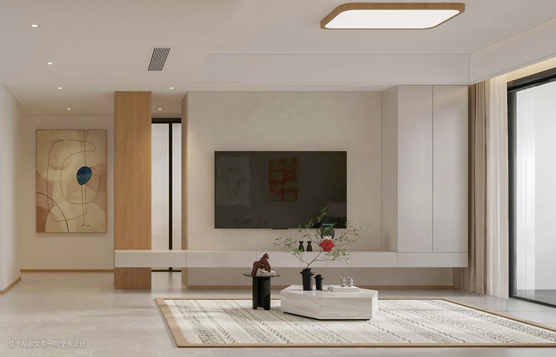 在客厅的现代设计中,我们主要关注电视背景墙和天花板天花板的设计,而日式装饰追求简约,电视的背景墙往往只装饰着一整块简约的木材或石材,有的甚至是做一个禅韵的留白。