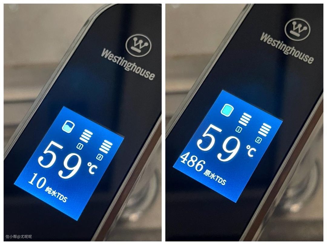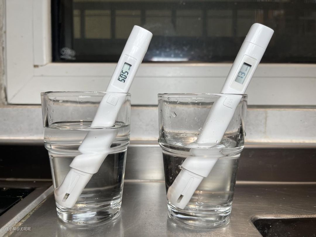 首先就是TDS实测,青岛的水质特别差,可以看到我从自来水管接出来的水TDS值高达505,而经过西屋净水机净化后的水TDS值仅仅只有13。