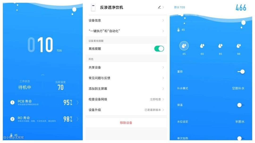 而发展到现在净水器去比拼的早就不是能不能净化干净,而是能不能减少接水时间,能不能直出热水省去烧水烦恼,以及是否足够智能能不能做到无需弯腰主机查看相关数据。