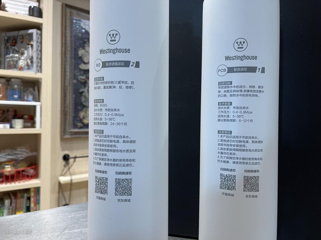 聊到这里了顺便也给大家展示一下这款净水器的滤芯,可以看到这款净水器一共两根滤芯。其中一根是RO滤芯这个不必多说,我看了一下是美国陶氏RO膜,质量还是有保证的。