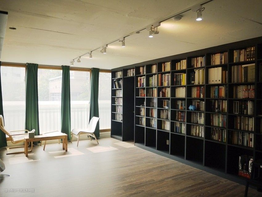 或者连电视也不要了,在电视背景墙设计一排书柜+办公区,实现一站式的学习体验~柜体一直延伸到阳台,还会从视觉上扩大客厅面积。