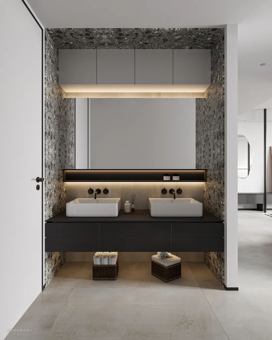 设计师利用明暗反差与线条勾勒层次感,看似高冷的色调中,蕴含生活的自然痕迹。