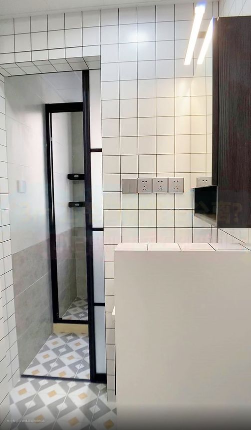 如果空间实在是紧凑,不允许砌墙,放隔断,只好把洗手盆单独放外面,但是实用性依旧很棒。