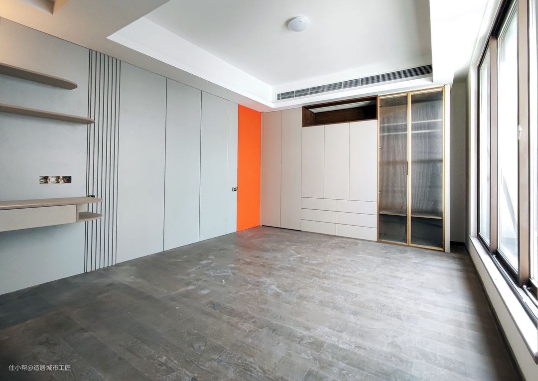 封闭是柜体部分长2370mm,宽2320,能够充分满足次卧所需得收纳,并在观感上奠定了温情的空间品质。
