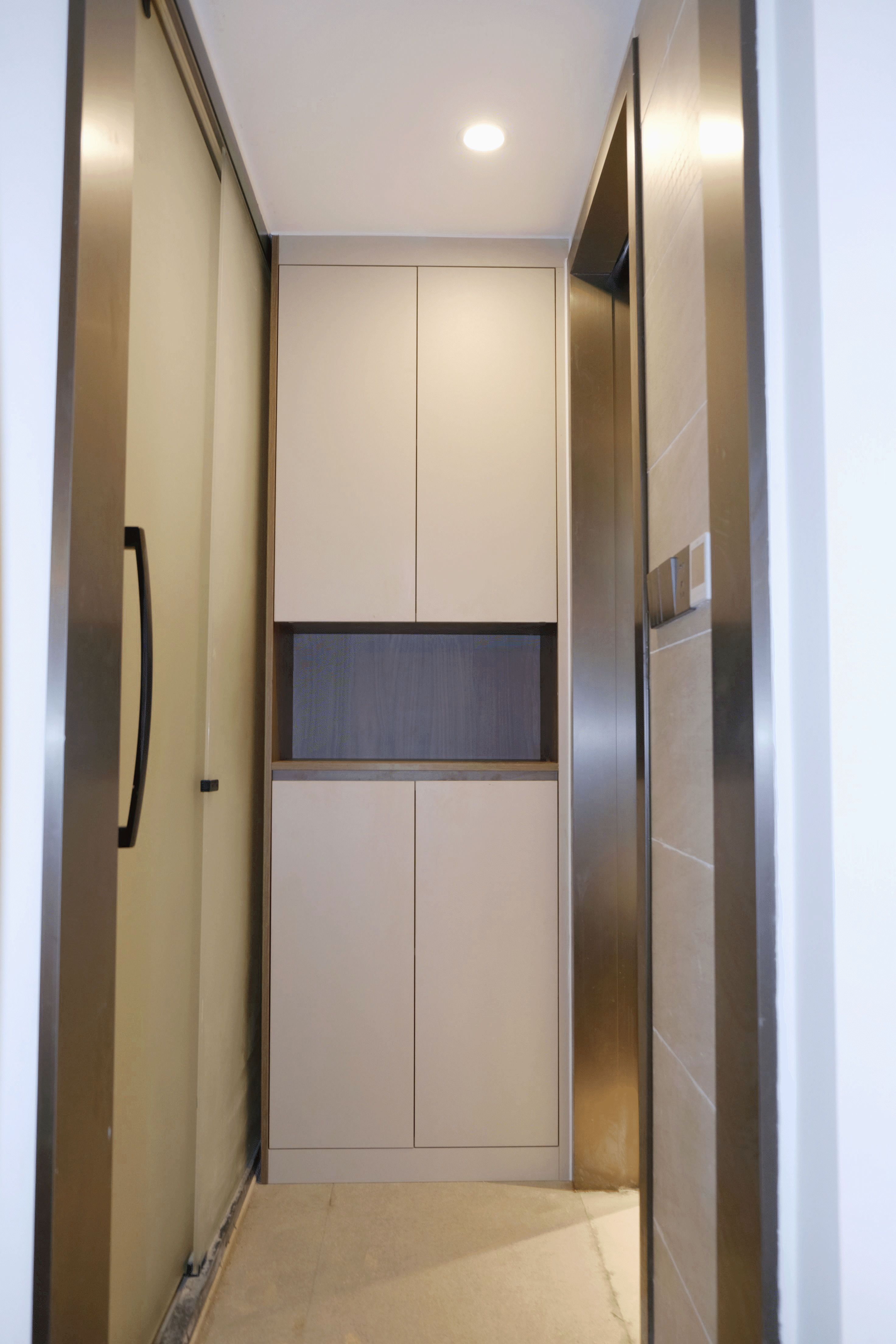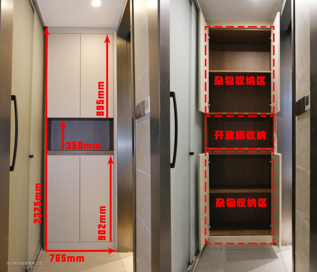 考虑到每个空间都需要收纳,此次还在负一楼区域做了个高2325mm,宽765mm的储物柜。