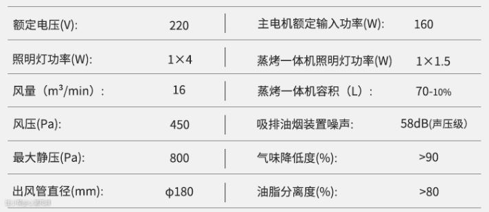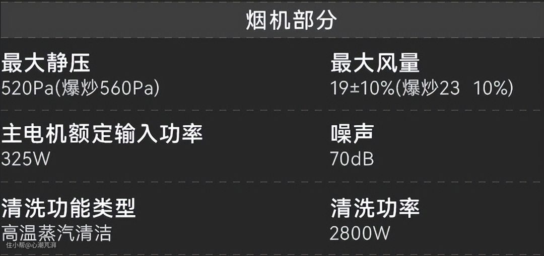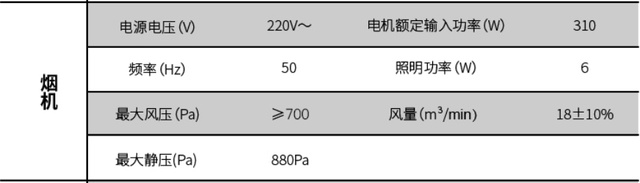 ▲在烟机方面,风量大小23m³/min,能够迅速将油烟吸入烟机内,防止油烟逃逸;风压大小为,的排烟需求。