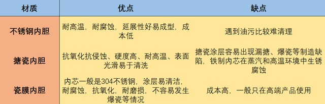 易清洁能力:陶瓷内胆≥搪瓷内胆>不锈钢内胆。