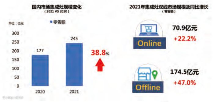 ▲找到了去年中国家用电器研究院与全国家用电器工业信息中心联合发布的《中国家电行业全年度报告》,报告中指出“据全国家用电器工业信息中心数据显示,2021年国内集成灶销售规模为245.5亿元,同比增长38.8%。”